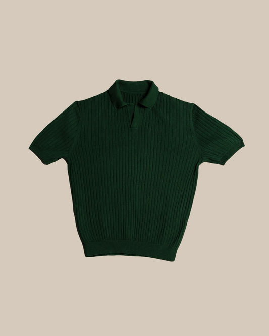Knitted Striped Polo Tee (Forest Night)