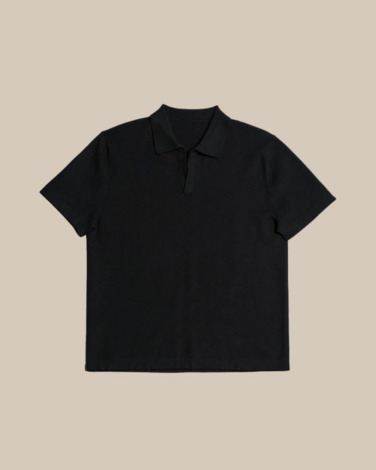 Knitted Plain Polo Tee (Black)