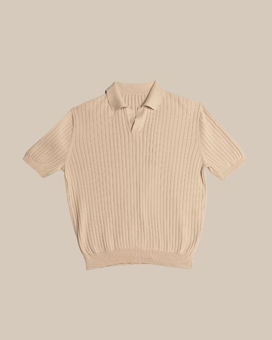 Knitted Striped Polo Tee (Sandstone Beige)
