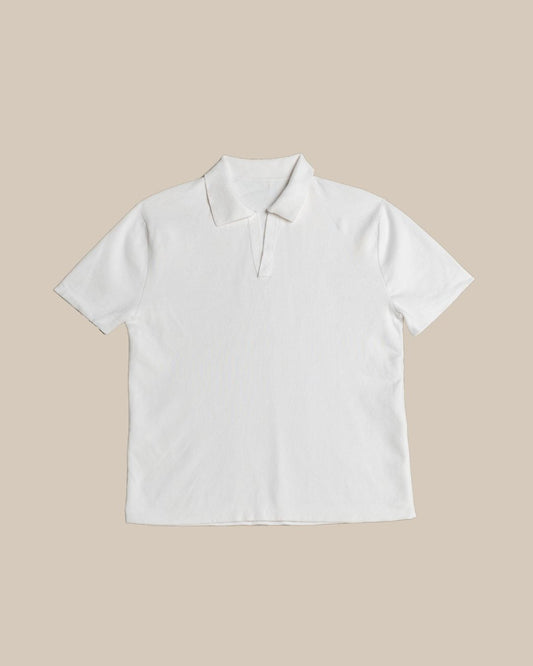 Knitted Plain Polo Tee (White)